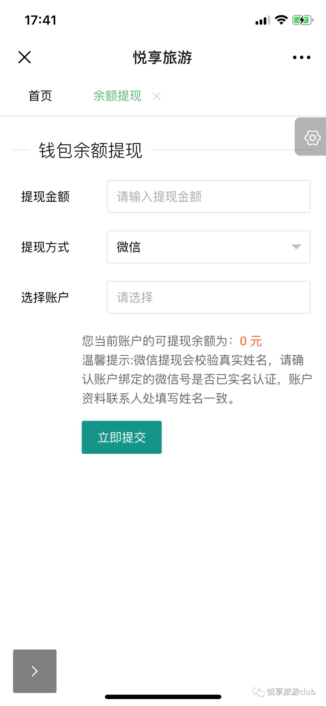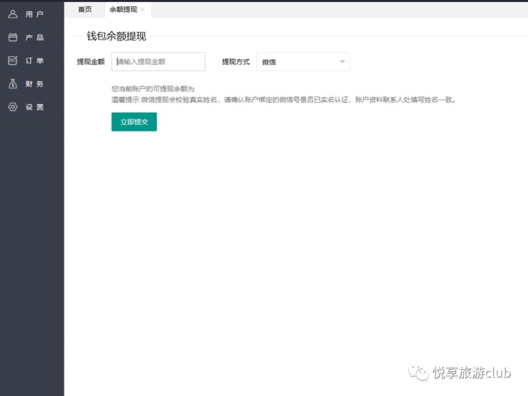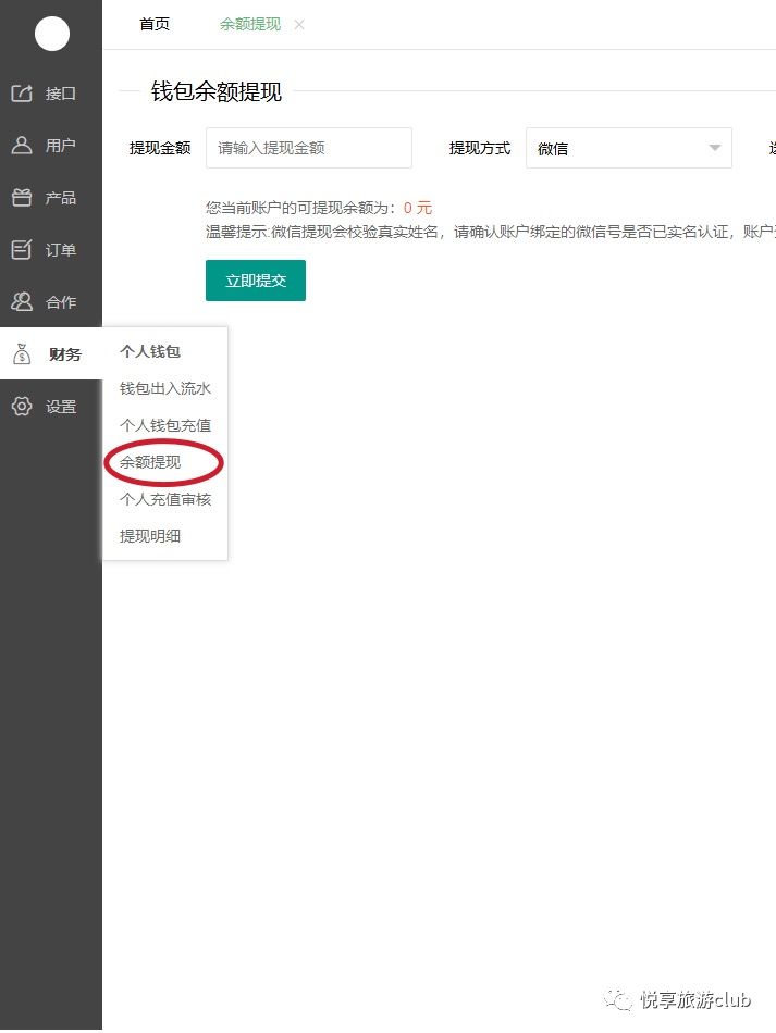 点击“余额提现”