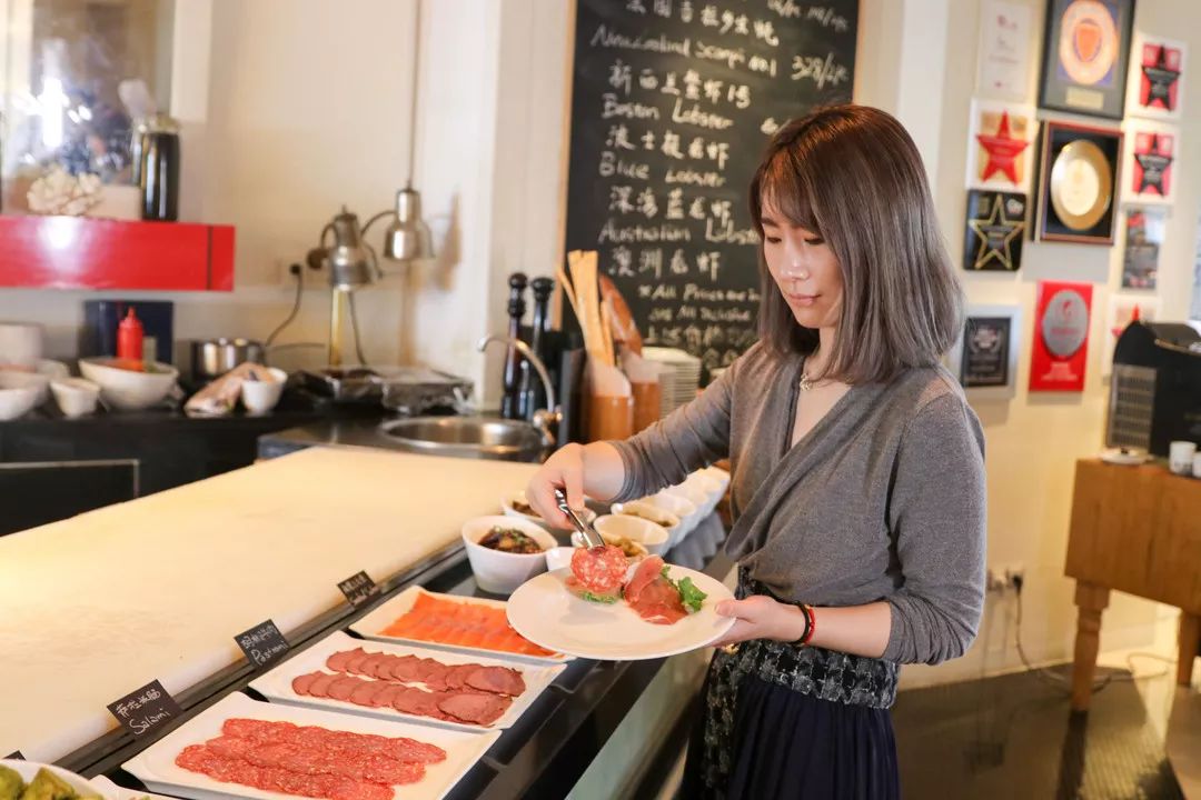 各色的烟熏系列美味全部是畅吃,主厨很用心,烟熏三文鱼还配了蛋黄酱点缀,没有其他酒店吃到的那么咸,入口多了股奶香气。