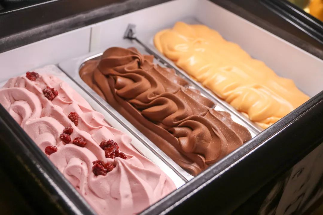 秋季新菜单还新增冰淇淋畅吃,来自意大利品牌ICE TALK,巧克力、草莓、芒果一共3种经典口味,采用进口牛奶+纯手工制作,不添加色素、香精,口感浓郁且不腻,好吃不怕胖。