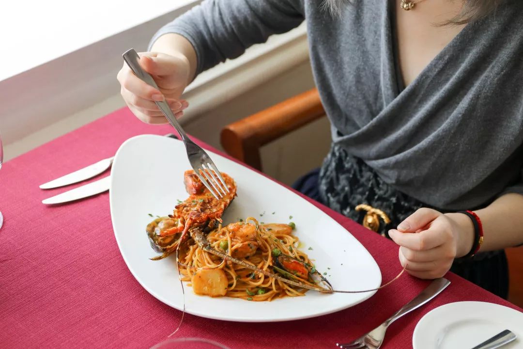工艺复杂、用料讲究,这6道主菜我首推低调奢华的海鲜意面。端上桌乍一看以为是常规的番茄酱汁,熟不知Chef巧妙地融入龙虾汁,味道浓郁之余,还使得意面富有海鲜的回甘,层次感很强。