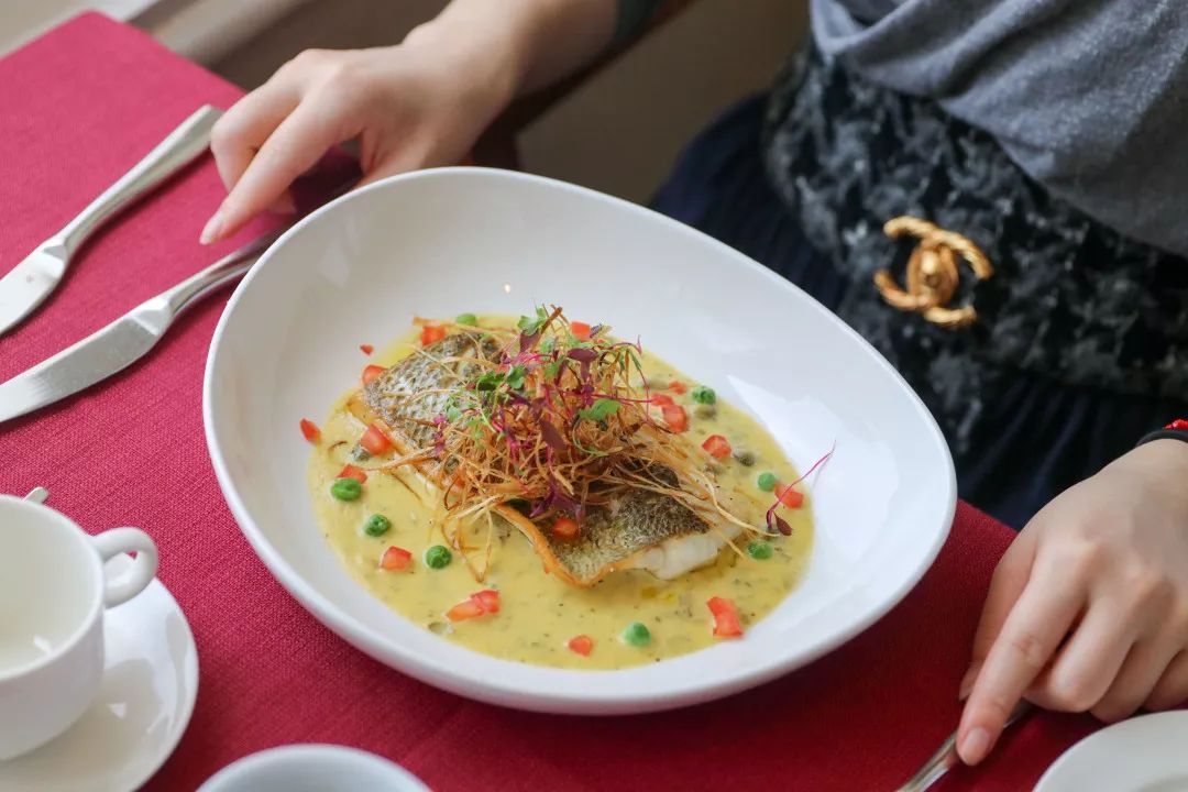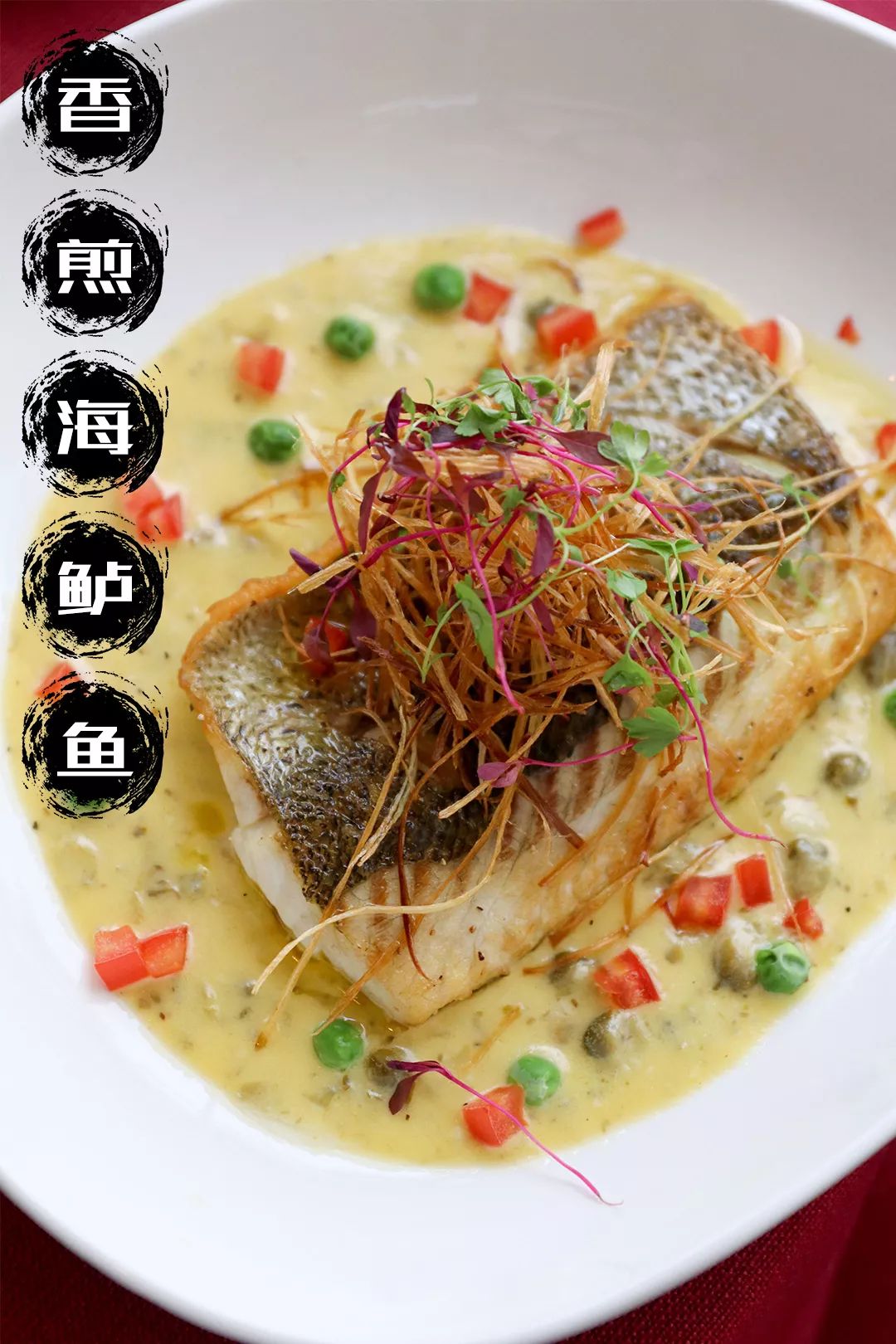 除了一系列的肉食,主厨还精心准备了一道香煎海鲈鱼,不得不赞一下主厨的手艺,Sauce这个点上Chef真的下了苦功夫,上个季度用的是番茄汁,而秋季用了黄油柠檬汁、水瓜榴、番茄和小豌豆,视觉看上去非常美。