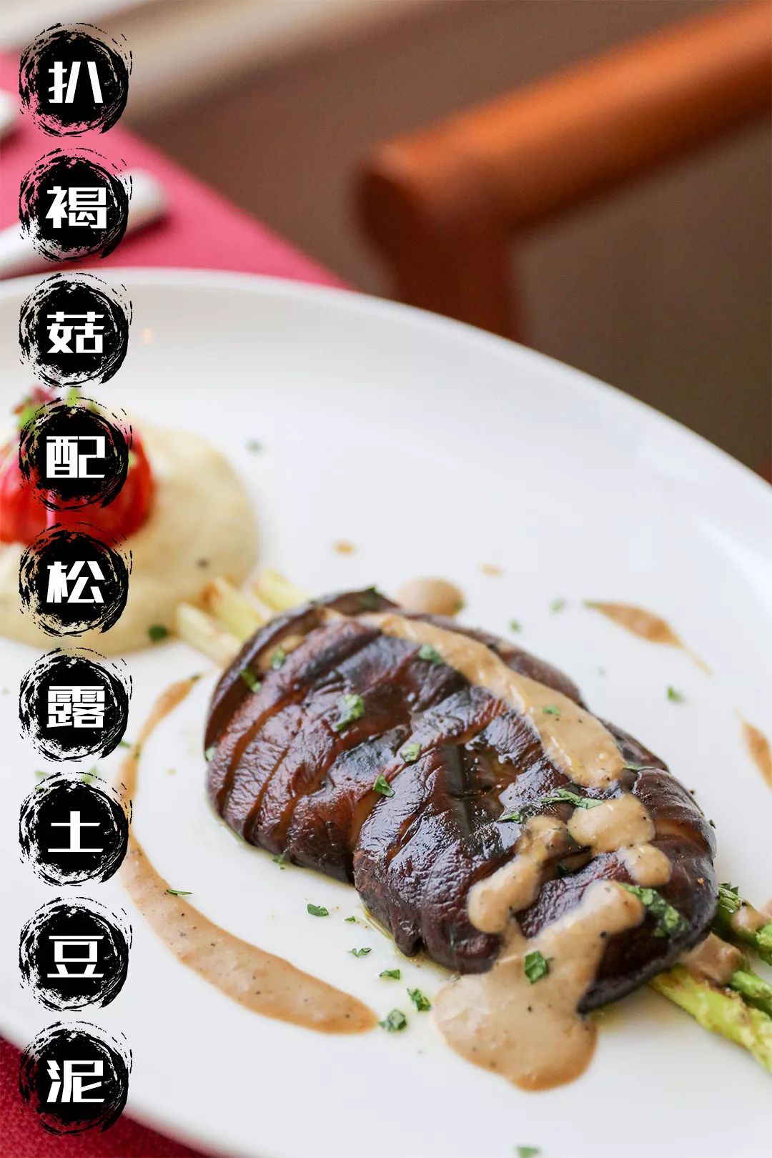 Chef还为素食主义者备了一道候选菜,牛排蘑菇国内很少见,本人虽然不感冒,但配角黑松露土豆泥是真的很抢戏又很好吃