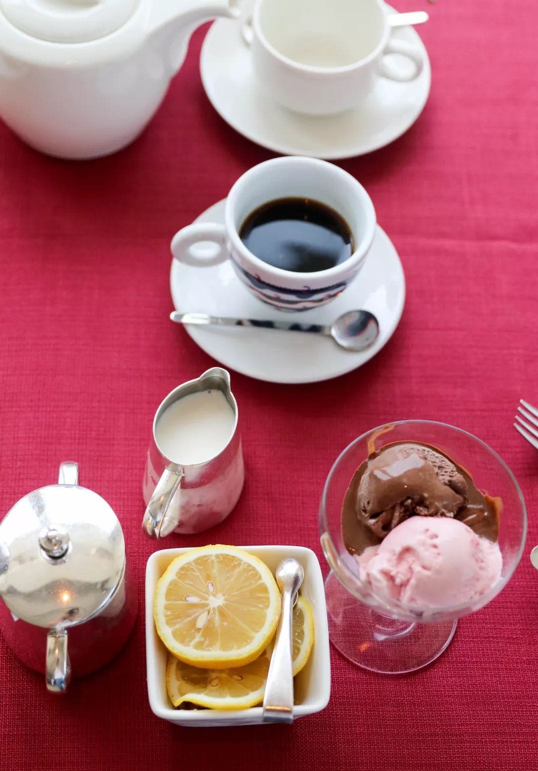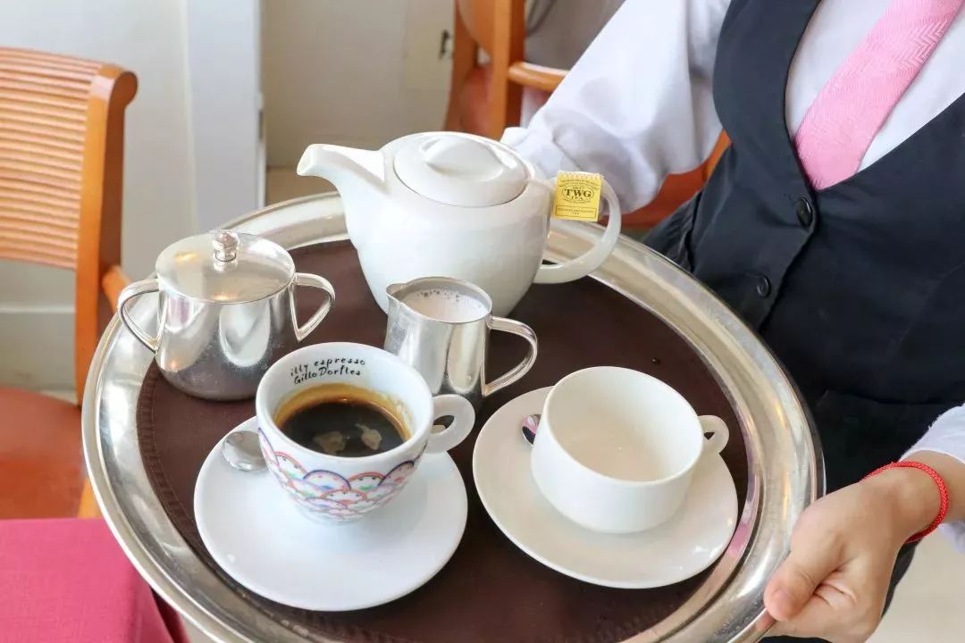 点菜间隙,每人可任选红茶或者咖啡一杯,我们顺手用做了摆盘道具。